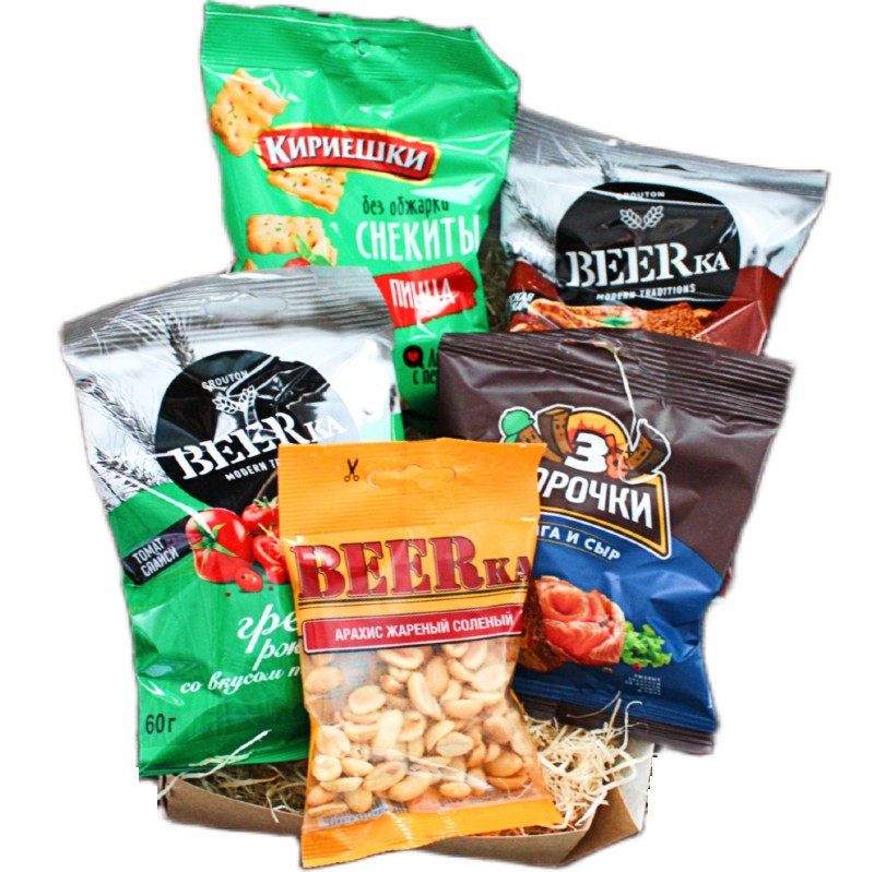 Подарок для мужчины с гренками, сухариками и арахисом